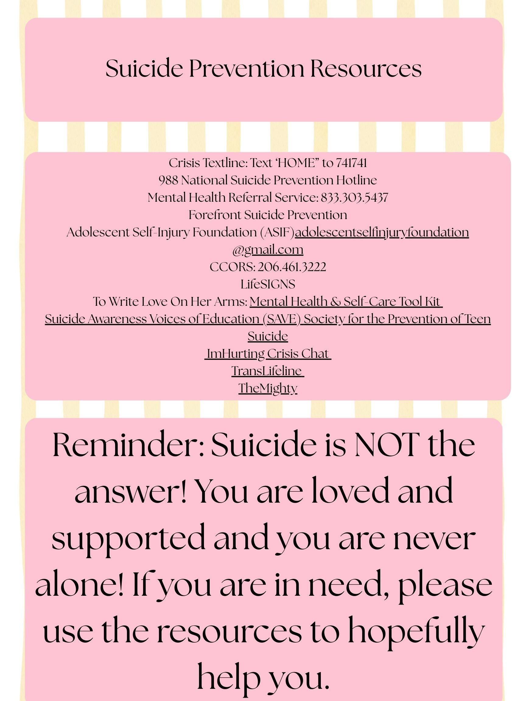 There is also a comprehensive support service list compiled. It includes 100+ services from crisis lines to local-in-person organizations with various focus topics.